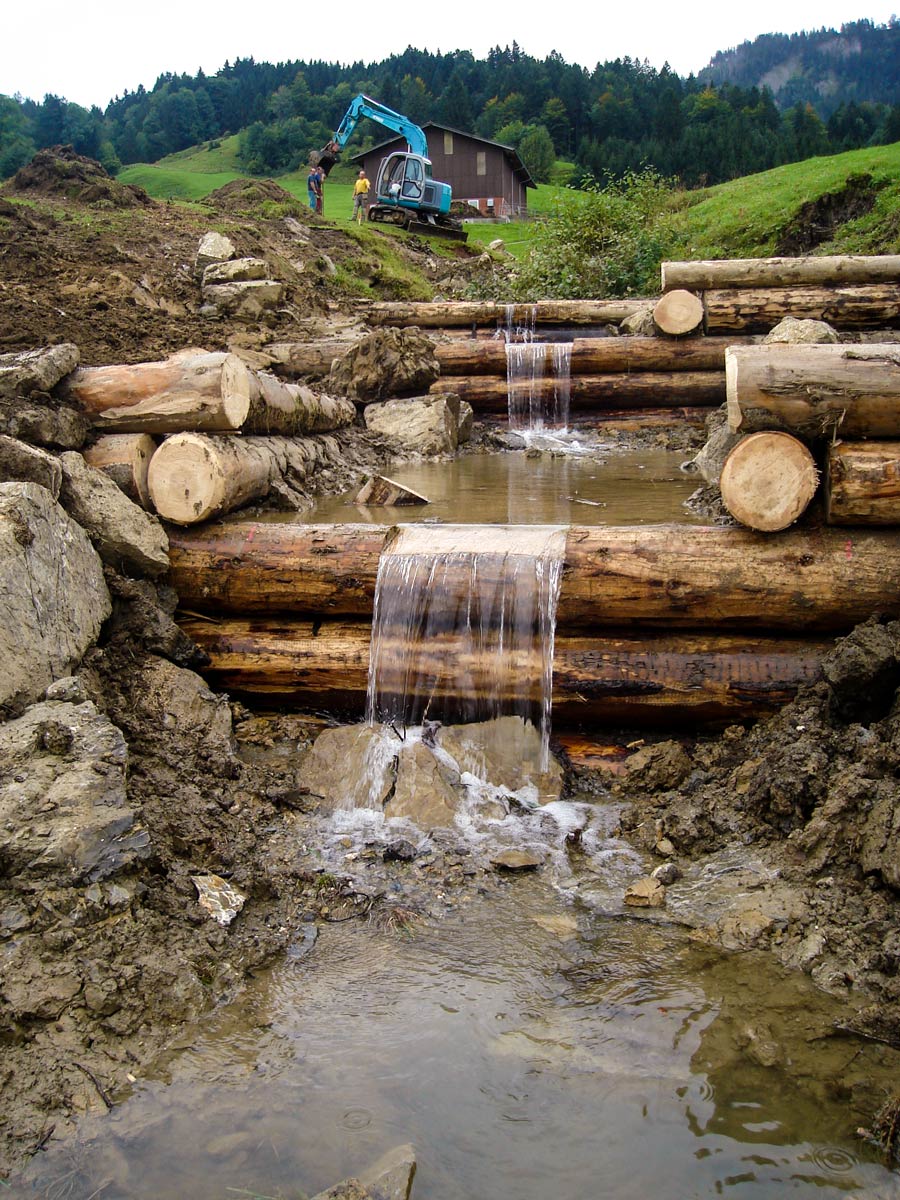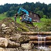 Durch meine langjährige Erfahrung im Tiefbau führe ich Bachverbauungen und kleinere Baggerarbeiten aus. Speziell ist sicher Gräben öffnen mit dem V-Löffel.
